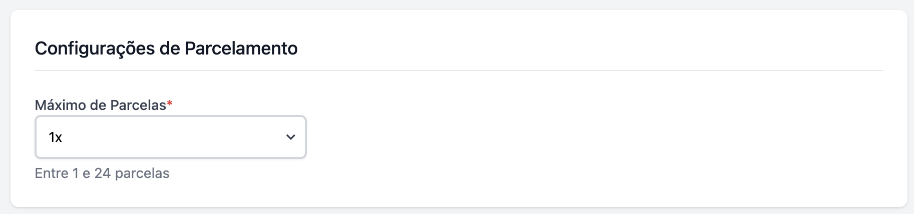Defina a quantidade máxima de parcelas que o seu cliente pode parcelar. Exemplo: 3x, 6x, 10x, 12x..