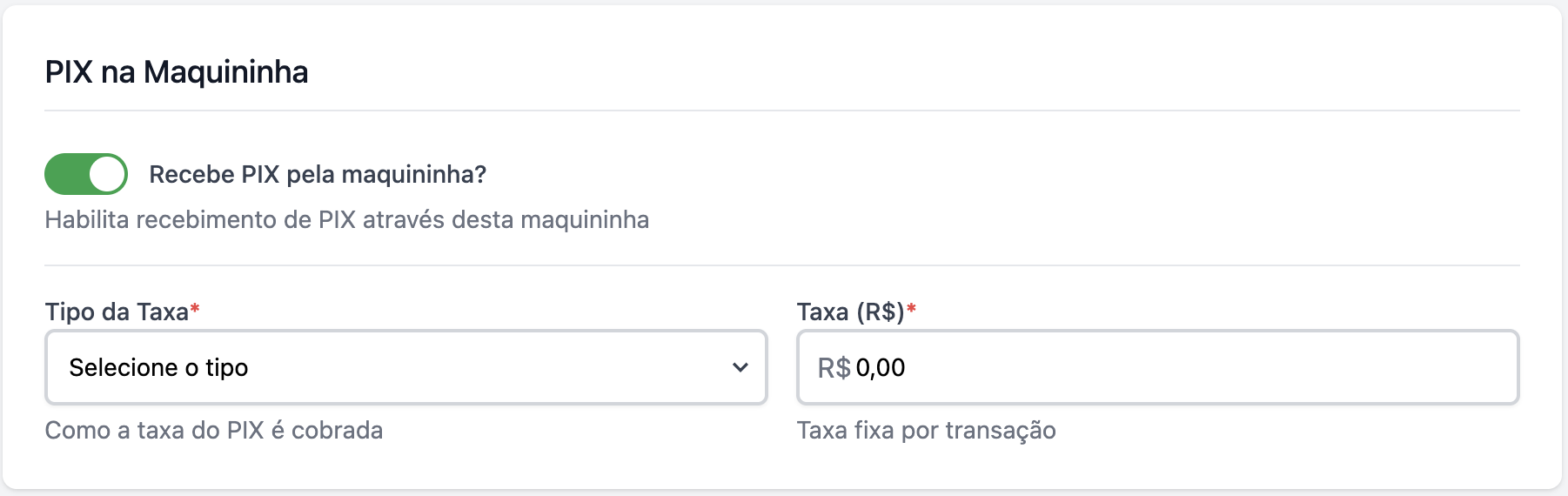 Nome da maquininha: Selecione qual fornecedor de maquininha você possui (Stone, Rede, Cielo, etc).