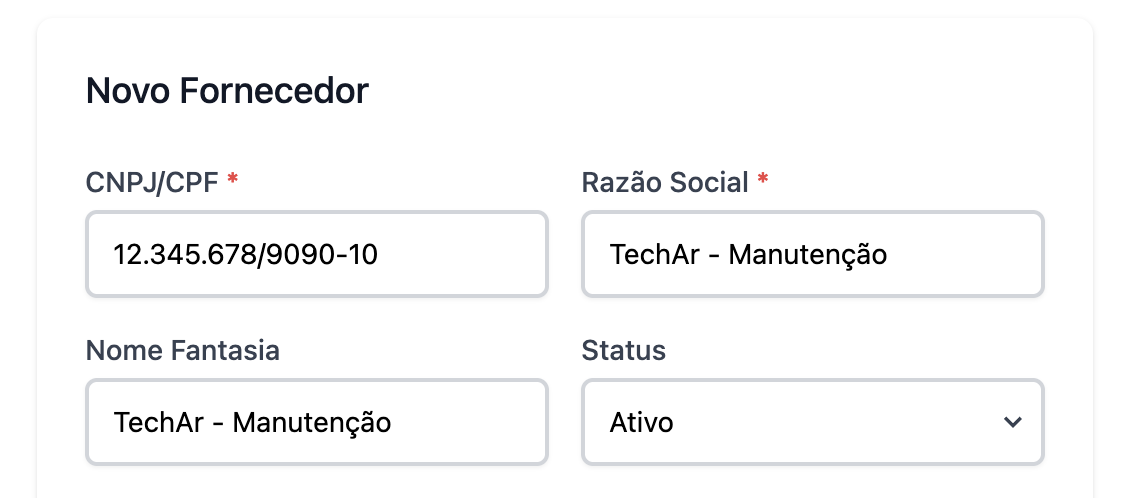 Após preencher os campos, basta clicar em "Salvar" e o fornecedor será salvo e já poderá ser vinculado às despesas e compras.
