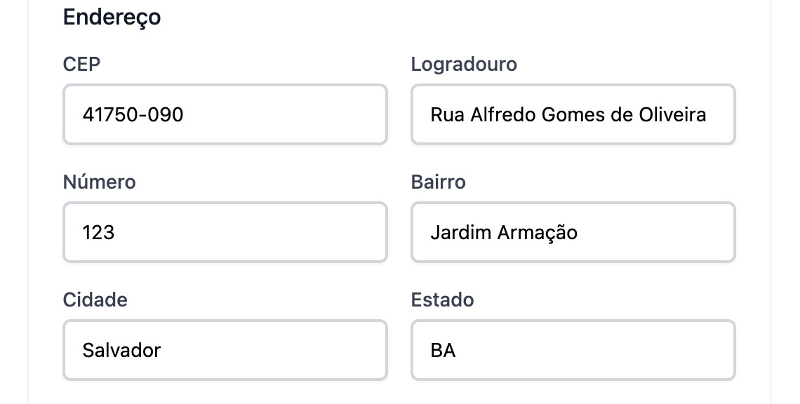 CEP: Preencha o CEP e os outros campos serão preenchidos automaticamente.