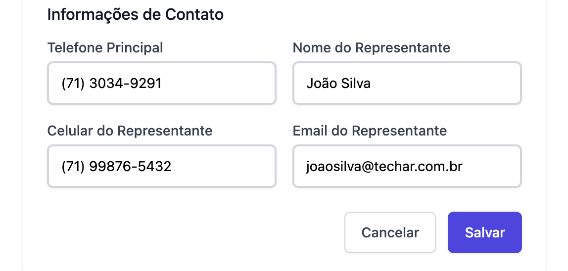 Telefone principal: Contato da empresa ou pessoa