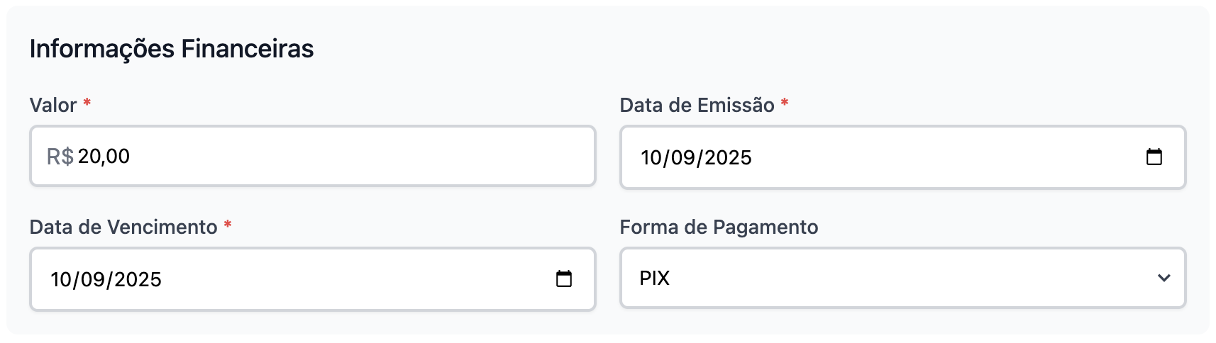 Agora serão necessários adicionar os dados financeiros da despesa.