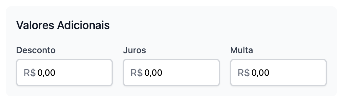 Agora você poderá preencher valores adicionais como: