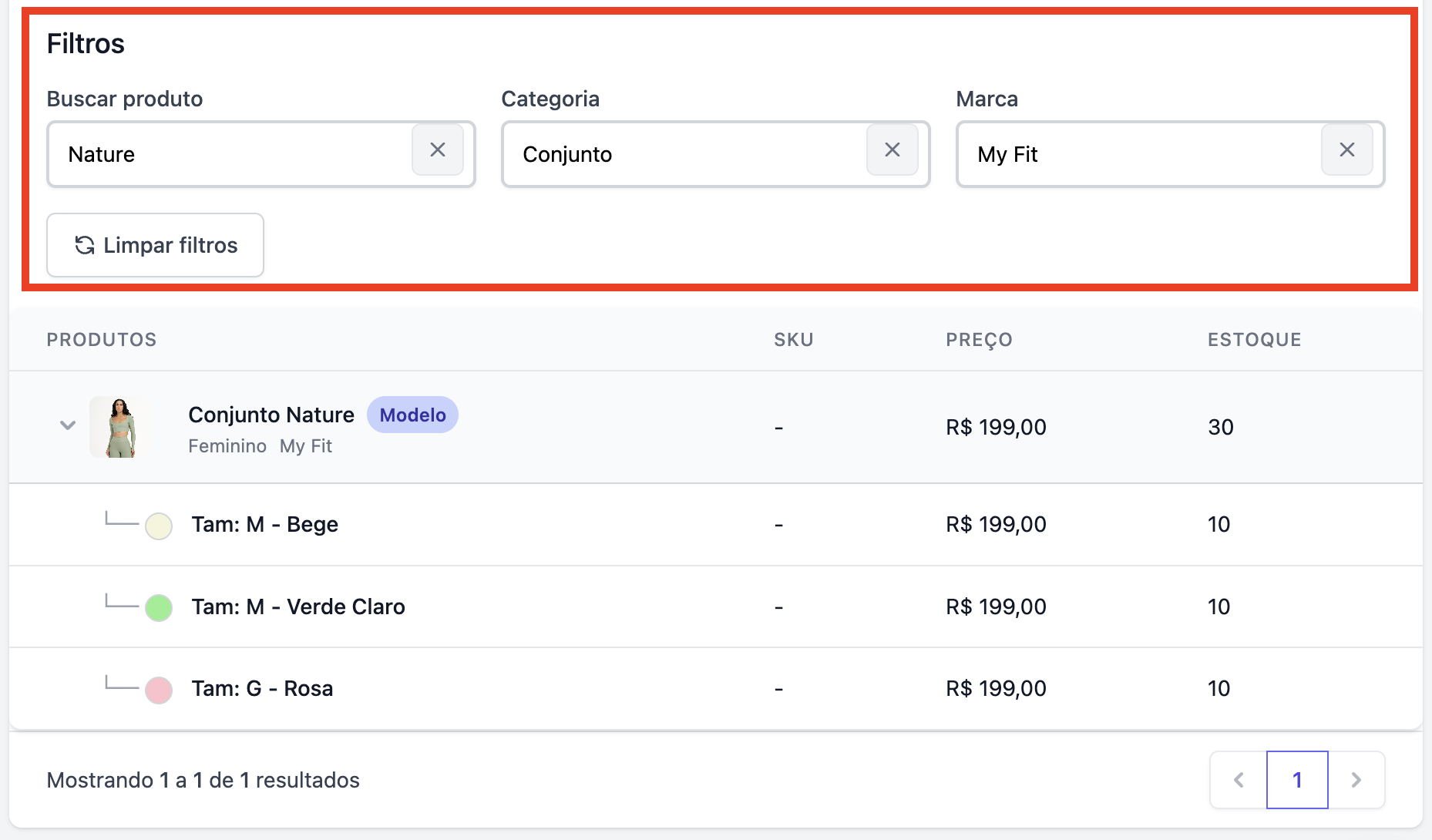 Para facilitar a localização de um produto específico, utilize os filtros. Veja um exemplo: