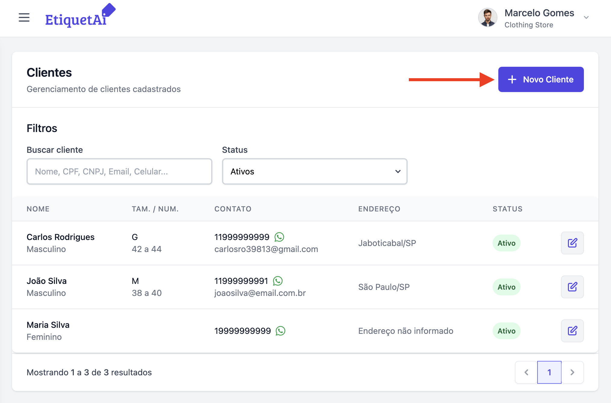 Neste artigo, você vai entender como cadastrar um novo cliente. Esse é um passo essencial permitir o uso completo de outras funcionalidades do sistema, como vendas, visualização dos clientes que mais compram na sua empresa, a preferência de tamanho, etc.