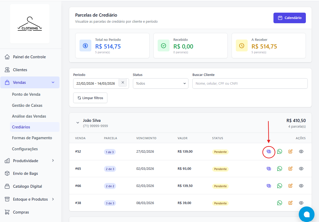 Como registrar o pagamento de uma parcela do crediário