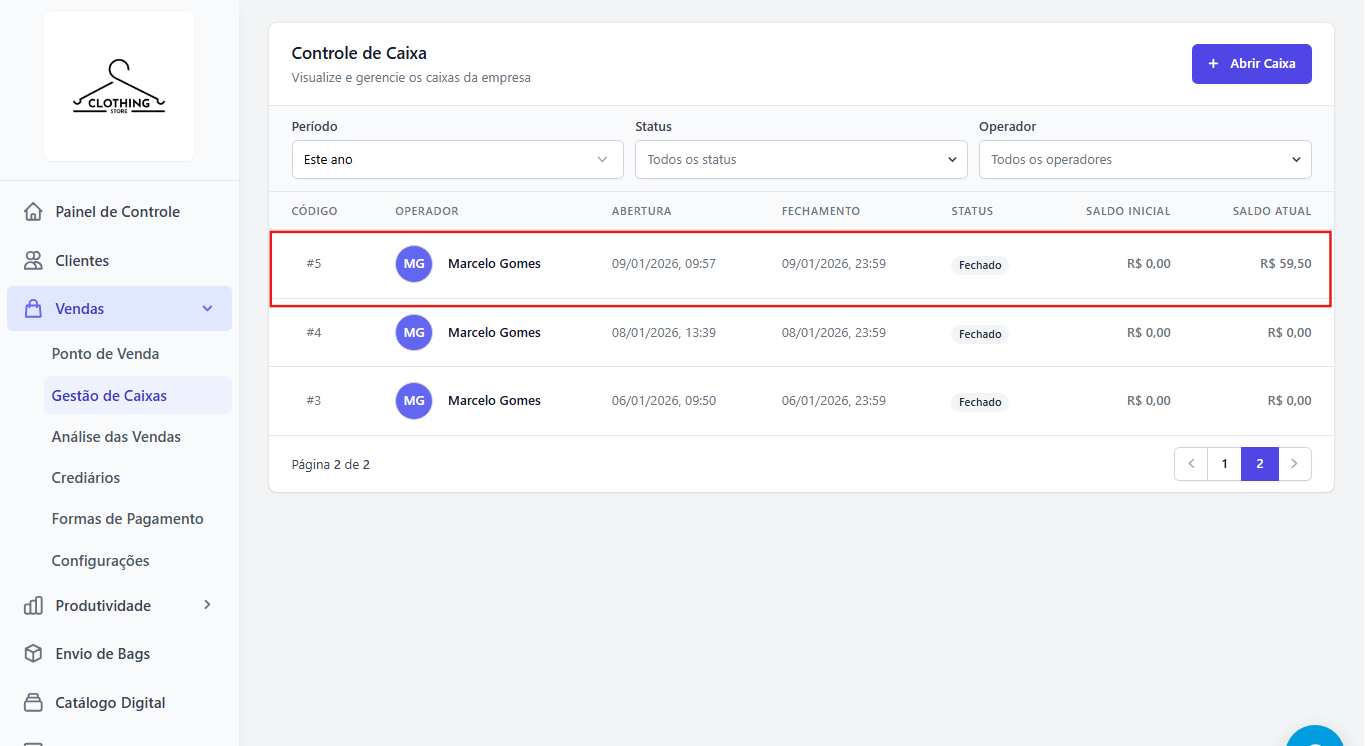 Essa conferência garante que o caixa da loja de roupas fique correto, evita diferenças no fechamento do dia e mantém o controle financeiro organizado.