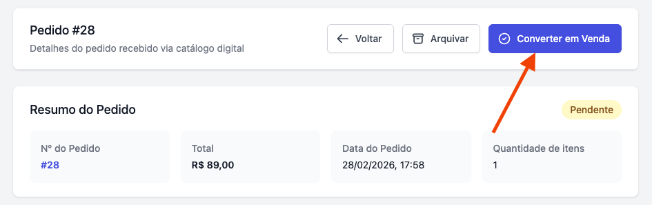 👉 Converter o pedido em venda